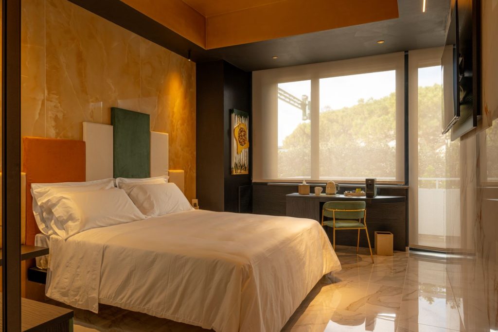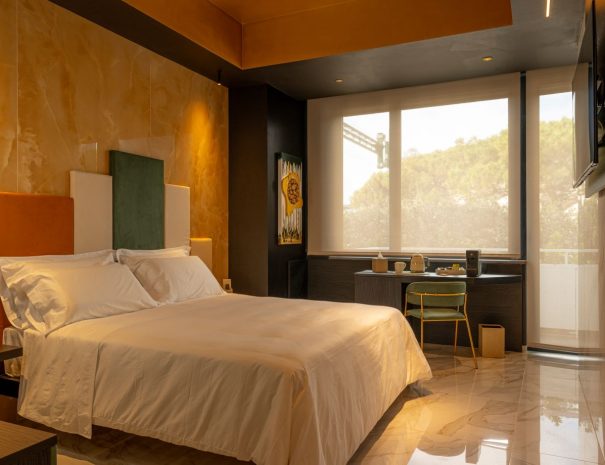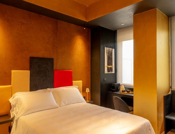 Camera matrimoniale deluxe, la soluzione ideale per chi cerca comfort ed eleganza. Moderna e raffinata, con ingresso indipendente con il proprio smartphone, 21 m² con bagno privato. Camera molto luminosa, con balcone che affaccia sulla via principale della città, dotata di aria condizionata e/o riscaldamento, TV a schermo piatto, WiFi gratuito ad alta velocità, cassaforte, minibar, bollitore Tè, Macchina per caffè espresso, prese USB a muro e comoda scrivania ben accessoriata. Biancheria dei letti e dei bagni della rinomata casa Rivolta Carmignani, per donare sensazioni uniche di comfort, stile ed eleganza. Bagno privato finemente arredato, con cabina doccia a pioggia, phon asciuga capelli e prodotti per il corpo della linea Carthusia di Capri, una linea di prodotti di altissima qualità ispirati al gusto e allo stile italiano e set di cortesia dal packaging raffinato. AREA:21 m² LETTI:1 BAGNI:1 PERSONE:2 Struttura non adatta ad ospitare i bambini. Vietato fumare Vietato l’ingresso agli animali