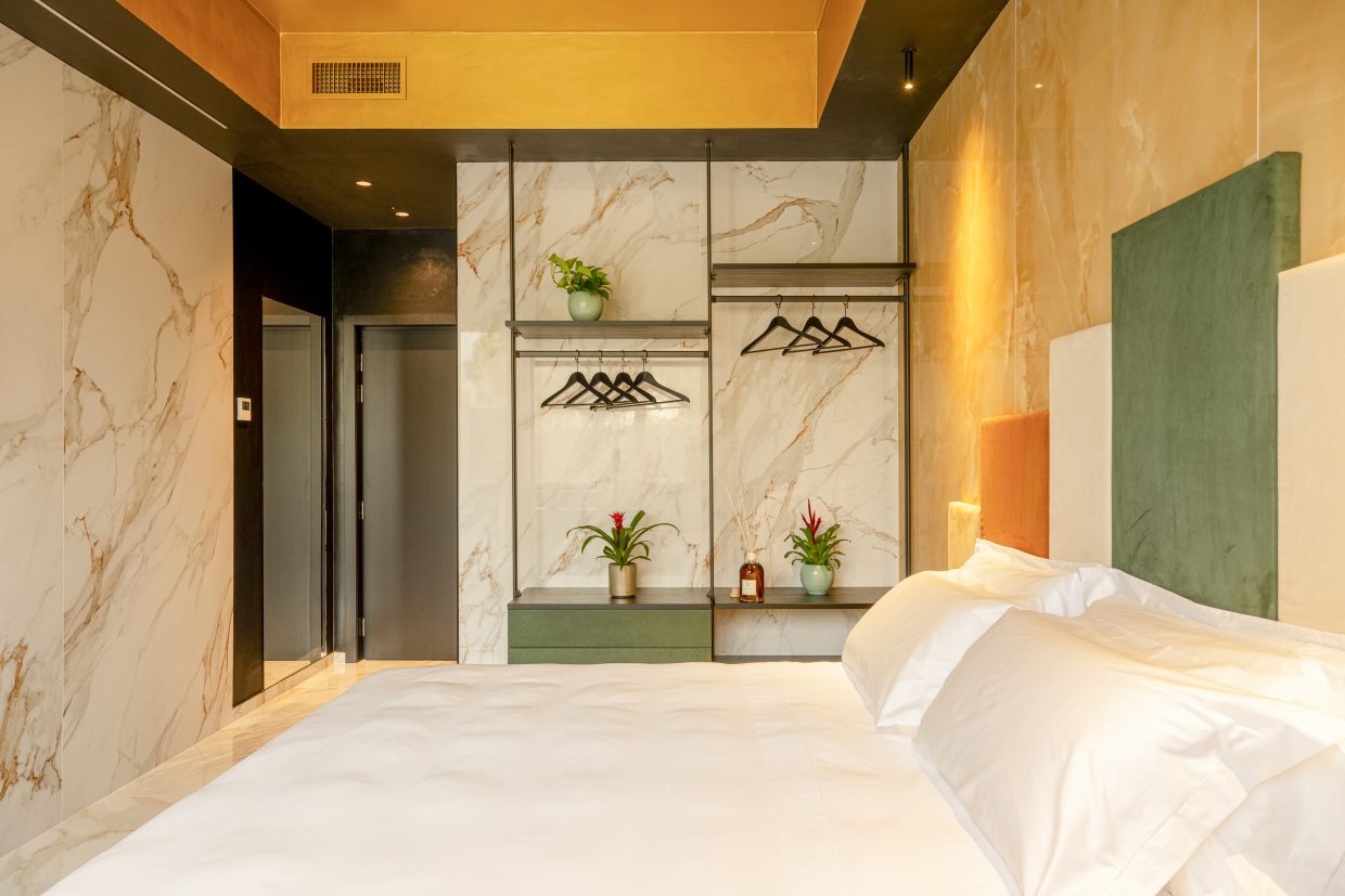 18 mq di poesia, come quelle che Eleonora ispirò allo scrittore Gabriele D’Annunzio. Nove anni d’amore in centinaia di lettere bianco su nero, colore predominante della stanza, che ci regala un comodo spazio di lavoro o di relax, tisane della massima qualità e del cremoso caffè Vergnano. Un fornito frigo bar vi assicurerà di soddisfare ogni piccola voglia. Il riposo è garantito da un avvolgente materasso 28 cm munito di topper, doppi cuscini e trapuntino quattro stagioni. Aria condizionata, bagno privato,cassaforte, smart tv, wifi gratuito, alexa e l’ accesso digitalizzato sono i punti di forza della nostra struttura.